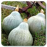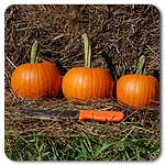 Pumpkins Organic Baby Pam- The standard for uniform pie pumpkins with long handles and a bright orange skin. Dry, stringless flesh cooks down to a smooth filling, but its sugary flavor is what beats all others for pie making. Great for painting faces as munchkin Jack O' Lanterns.